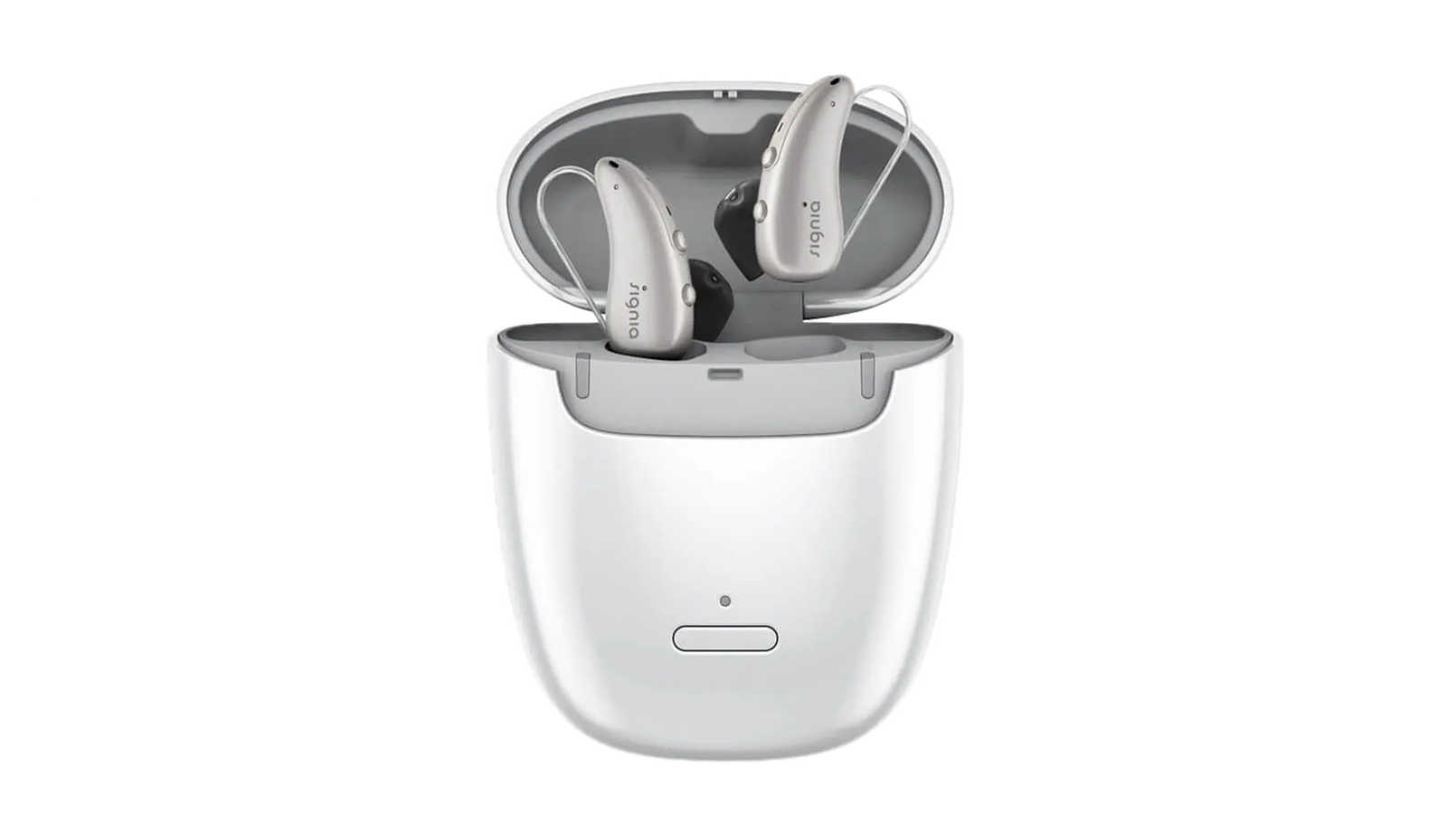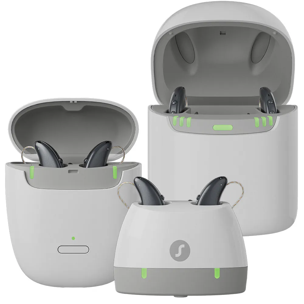 Take your hearing aids on the move with our pocket-sized charging case, which holds enough power to provide 3 full charges.
